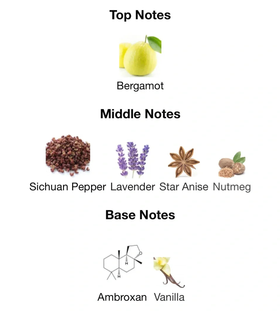 Heart Notes: Sichuan Pepper, Lavender, Pink Pepper, Vetiver, Patchouli